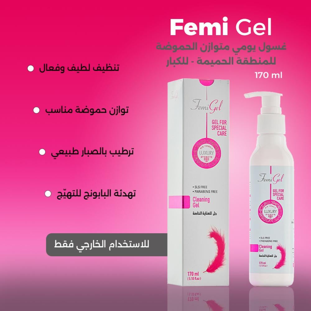 المنطقة الحميمة للمرأة تتطلب عناية خاصة ولطيفة فيمي جل هو غسول يومي مصمم خصيصًا لتلبية احتياجات هذه المنطقة الحساسة. بتركيبته المهدئة والمتوازنة الحموضة (pH balanced)، ينظف بلطف دون الإخلال بالحاجز الواقي الطبيعي للبشرة، مما يساعد على منع التهيج، الجفاف، والشعور بعدم الراحة. استمتعي بإحساس النظافة والانتعاش والثقة كل يوم.
